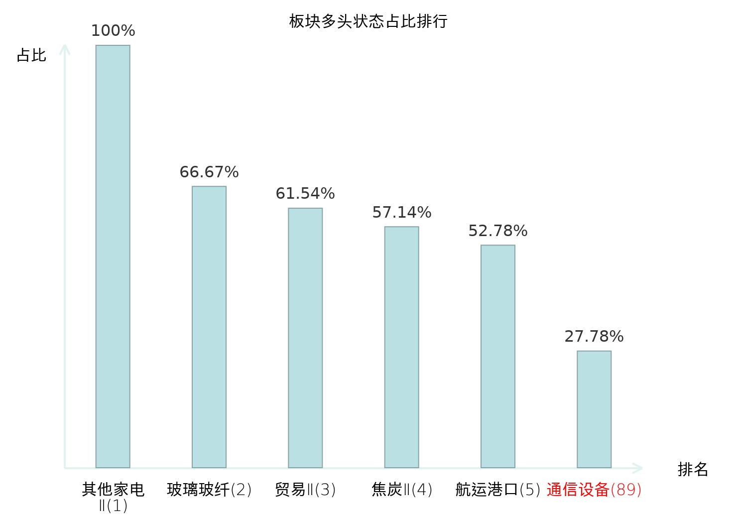 从主力宝信号数据分析,中际旭创所属的通信设备板块中共有25只股票处于主力多头状态,主力多头状态占比在全行业中排名第89位,较昨日上升10位。排名上升表明主力对该板块的整体看多意愿增强,为投资者提供了积极的市场情绪参考。全市场所有行业板块中,其他家电Ⅱ板块主力多头状态占比最高,位居第一;影视院线板块名次提升最快,较昨日上升62位。这些变动揭示了主力资金在不同行业间的偏好变化,有助于投资者更好地理解市场动态和趋势。