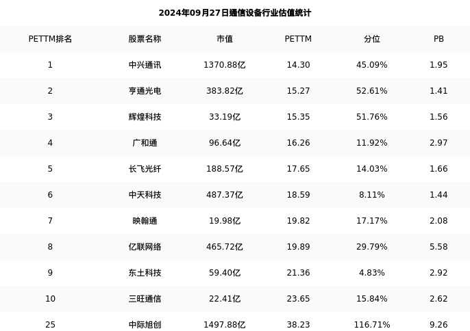 从估值角度看:中际旭创最新市盈率PETTM为38.23,在行业内排名25/87,处于116.81分位。