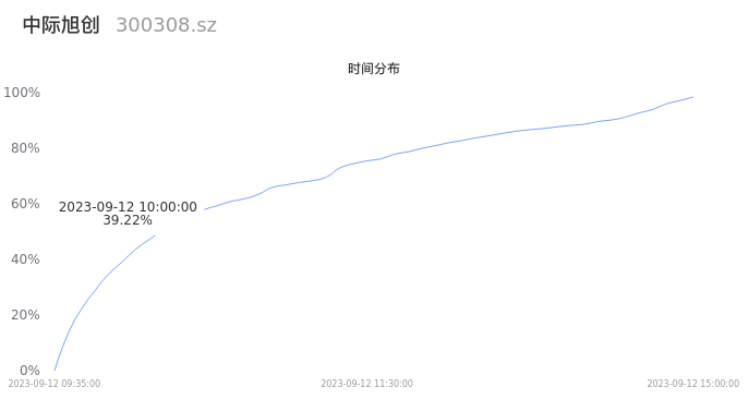 300308中际旭创2023年09月12日成交24.48万手,成交金额27.04亿元,相较昨日缩量13.49万手,换手率3.26%,成交清淡。
