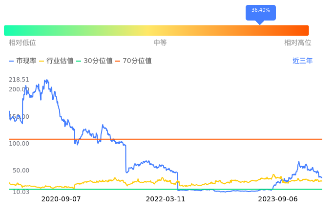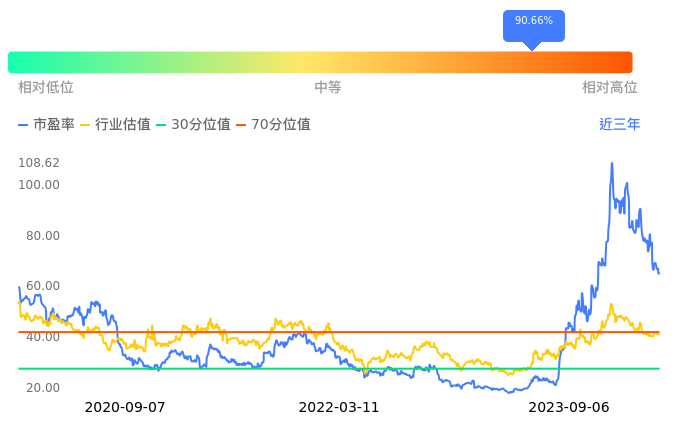 2023年09月07日,中际旭创下跌3.09%收于106.31,今日成交金额25.76亿元。下文将从市盈率PETTM、市净率PB、市现率3个角度去分析公司估值情况。