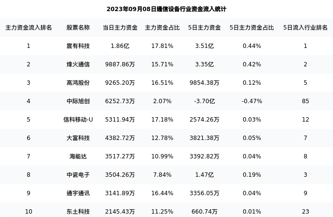 从主力资金流向来看,通信设备行业今日主力资金流入65.66亿元,在所有申万二级行业中排名:24/131。