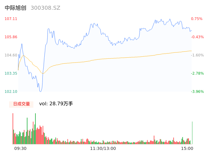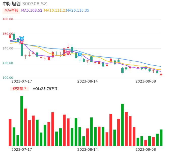 09月08日,中际旭创收报105.25,股价涨幅-1.00%,成交金额30.20亿元,换手率3.84%。