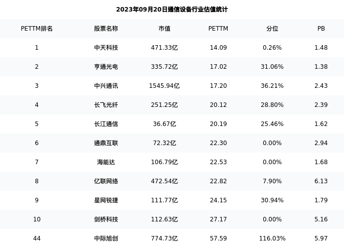 从估值角度看:中际旭创最新市盈率PETTM为57.59,在行业内排名44/86,处于116.03分位。