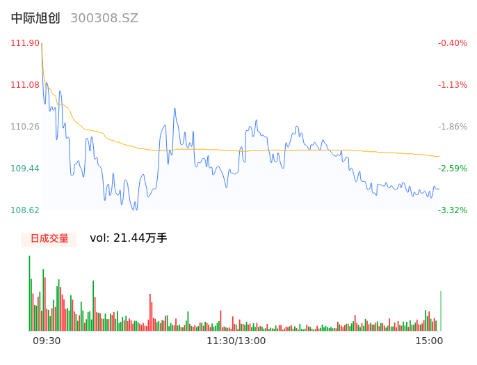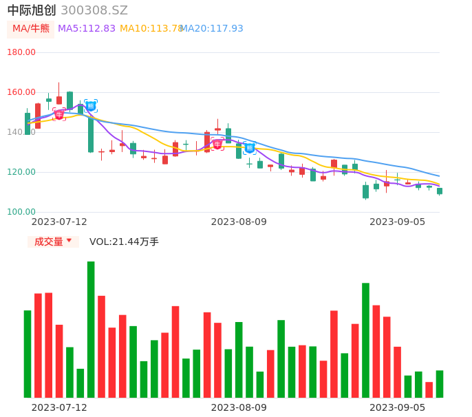 09月05日,中际旭创收报109.01,股价涨幅-2.97%,成交金额23.51亿元,换手率2.86%。