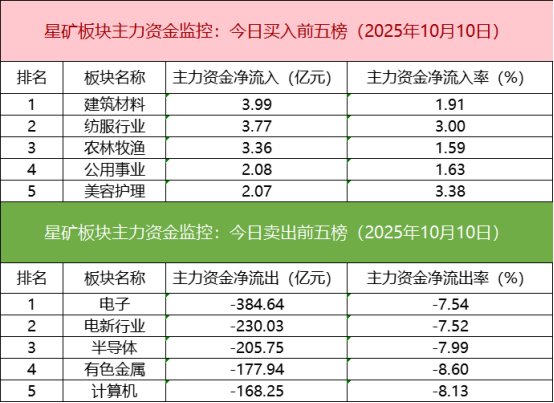 从主力板块资金监控数据来看,建筑材料板块主力资金净流入居首。