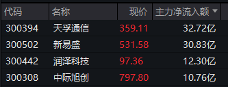 Wind实时监测数据显示,截至午间收盘,AI算力板块获得逾151亿元主力资金净流入,其中天孚通信(300394)获得逾32亿元净流入,新易盛获得逾30亿元净流入,润泽科技、中际旭创也均获得超10亿元净流入。