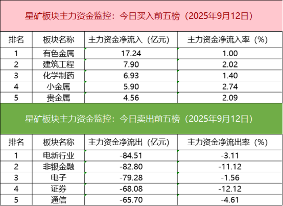 从主力板块资金监控数据来看,有色金属板块主力资金净流入居首。