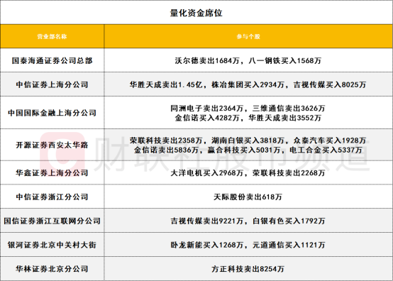 量化资金活跃度明显降低,华胜天成遭两家量化席位分别卖出1.45亿和3552万。赢合科技获一家量化席位买入5031万。