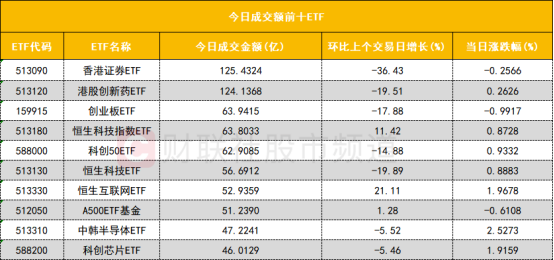 从成交额前十的ETF来看,香港证券ETF(513090)成交额位居首位,港股创新药ETF(513120)成交额位居次席。