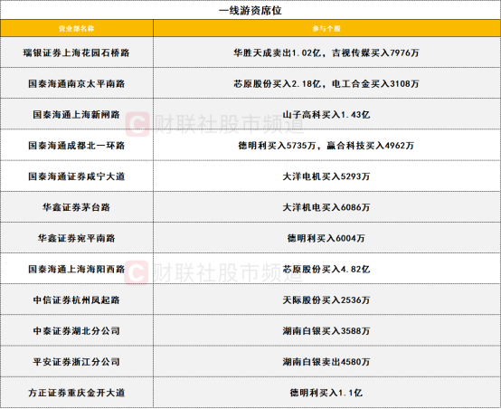 一线游资活跃度一般,芯原股份获两家一线游资席位分别买入4.82亿和2.18亿。德明利获三家一线游资席位合计买入2.2亿。此外,华胜天成遭一家游资席位卖出1.02亿。