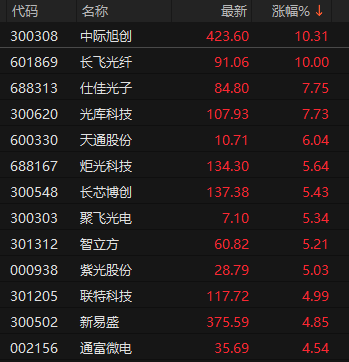上证报中国证券网讯 9月3日午后,CPO概念股震荡拉升,截至14时19分,中际旭创涨超10%,光库科技、仕佳光子、长芯博创等跟涨。长飞光纤此前涨停,走出8天5板。
