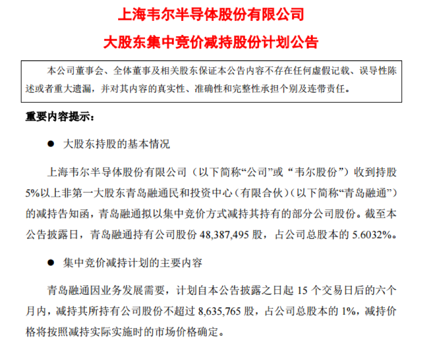 从盘面看,虽然半导体、芯片板块11月11日跌幅领先,板块内即便是业绩相对一般个股,最新收盘日也并没有跑输大盘太多,究竟是何原因导致韦尔股份跌停?巧合的是,11月11日,韦尔股份发布了一份减持计划。