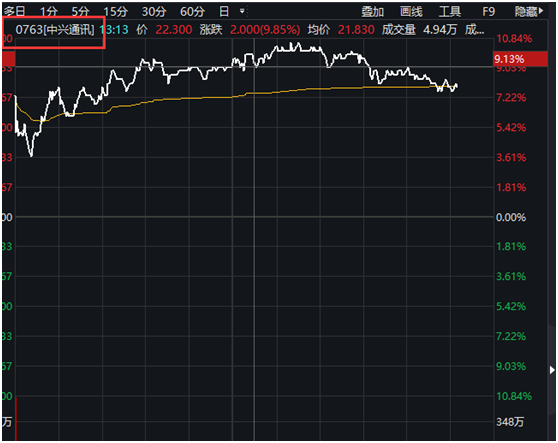 中兴通讯港股的表现更为引人注目,该股盘中涨幅超过10%,成交量创最近几个月天量。