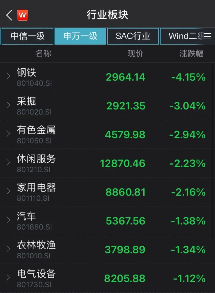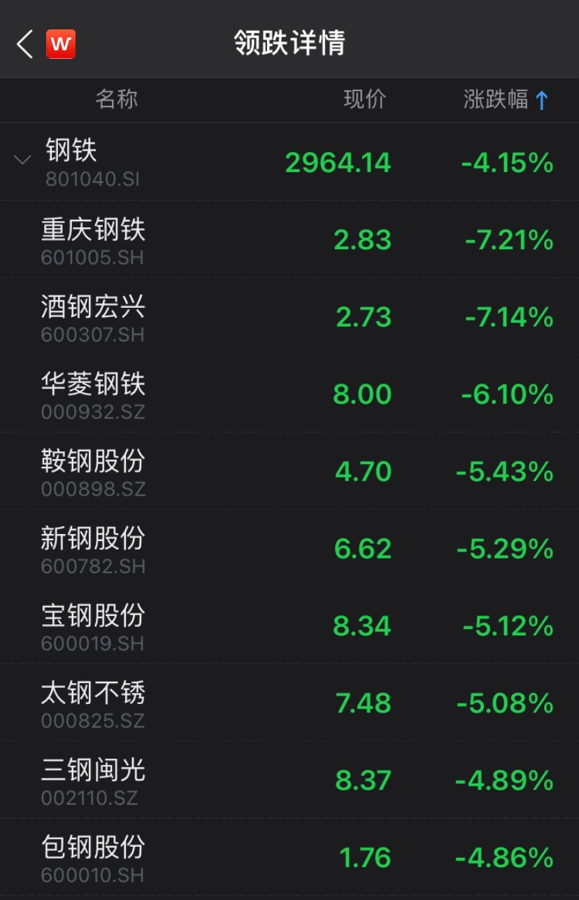 A股市场上,钢铁、有色金属、采掘等顺周期板块大幅低开,随后低位震荡。截至午间收盘,钢铁、有色金属、采掘板块携手领跌申万一级28个行业板块,分别跌4.15%、2.94%、3.04%。