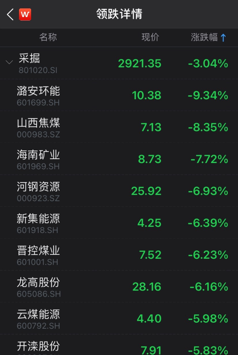 近期涨势强劲的重庆钢铁、酒钢宏兴半日跌逾7%;潞安环能盘中触及跌停,半日大跌逾9%;山西焦煤跌逾8%。