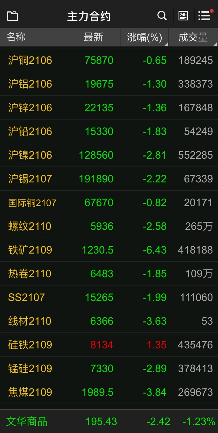 今日早盘,国内商品期货市场上,煤焦、矿钢类期货盘初延续涨势,盘中多数转跌。截至午间收盘,铁矿石期货主力合约大跌逾6%。