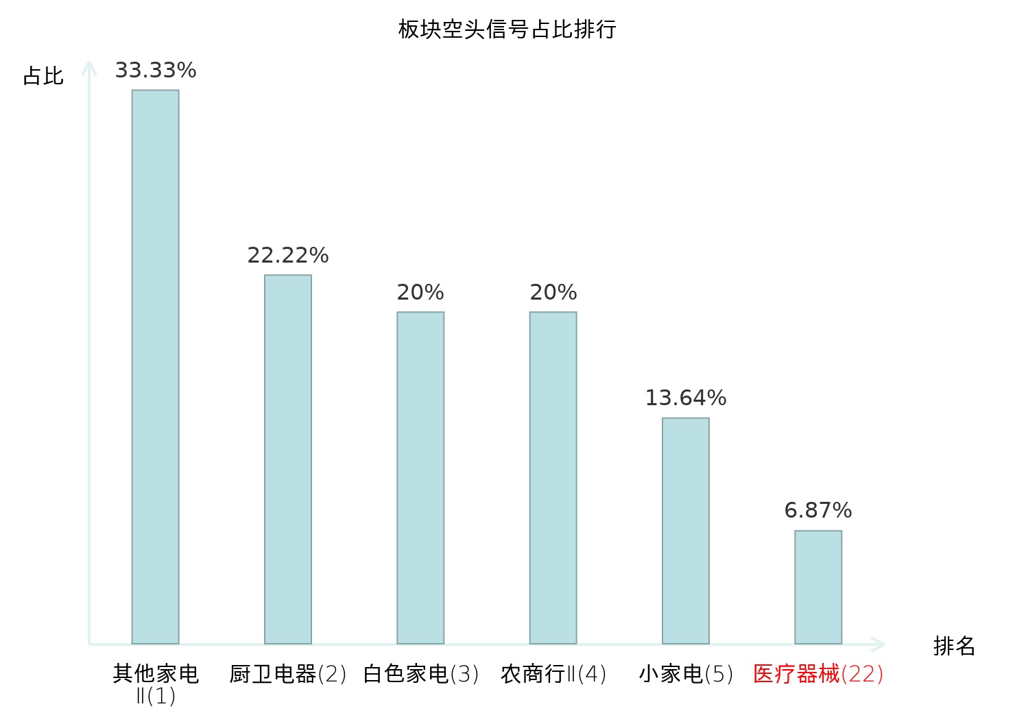 全市场所有行业板块中主力空头信号占比排名中,其他家电Ⅱ板块位居第一。地面兵装Ⅱ板块名次提升最快,较昨日上升107位。