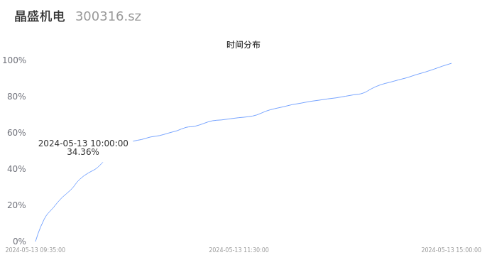 300316晶盛机电2024年05月13日成交14.93万手,成交金额4.84亿元,相较昨日缩量3.32万手,换手率1.21%,成交清淡。