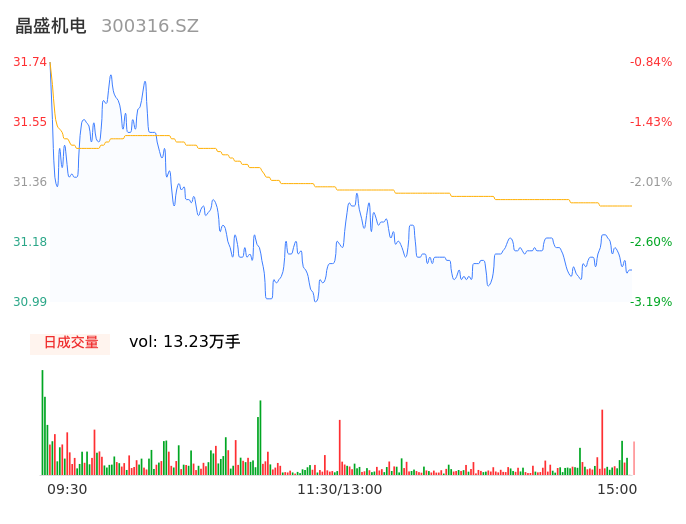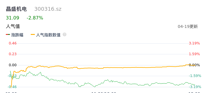 04月19日,晶盛机电收报31.09,股价涨幅-2.87%,成交金额4.14亿元,换手率1.07%。
