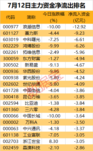今日有105只个股净流出资金超亿元,AI概念仍被资金抛弃,净卖出前10股有6股是AI相关概念,包括浪潮信息、中科曙光、鸿博股份、拓维信息、新易盛、世纪华通。