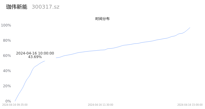 300317珈伟新能2024年04月16日成交24.49万手,成交金额8900.90万元,相较昨日放量3.16万手,换手率2.96%,成交清淡。
