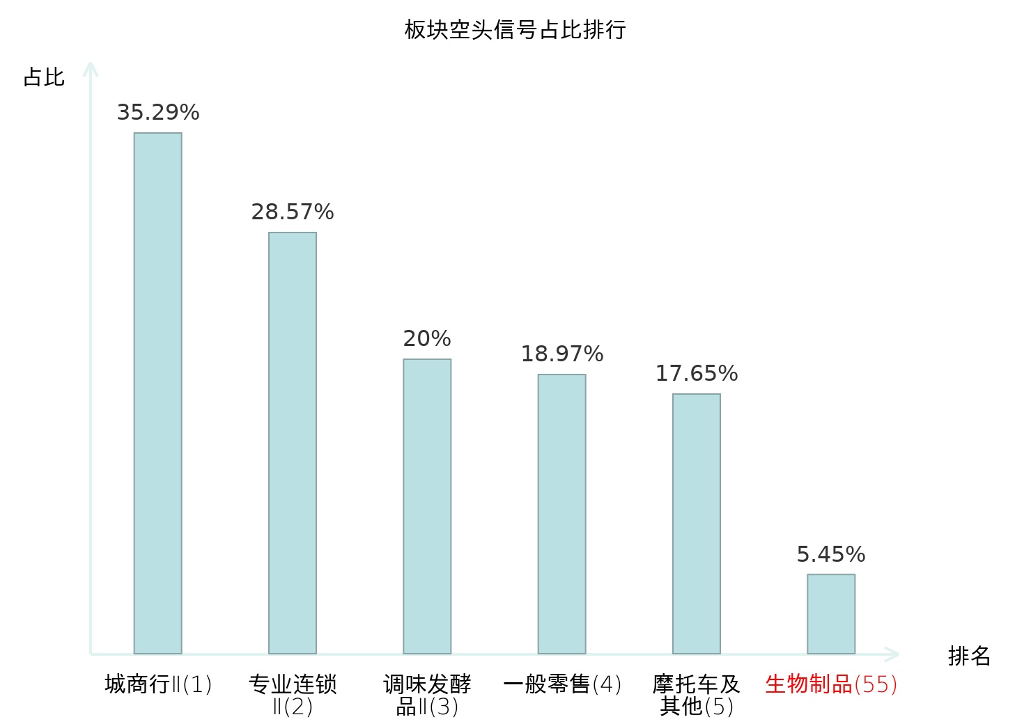 全市场所有行业板块中主力空头信号占比排名中,城商行Ⅱ板块位居第一。炼化及贸易板块名次提升最快,较昨日上升96位。
