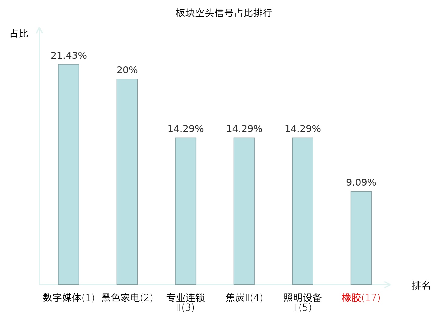 全市场所有行业板块中主力空头信号占比排名中,数字媒体板块位居第一。装修装饰Ⅱ板块名次提升最快,较昨日上升110位。