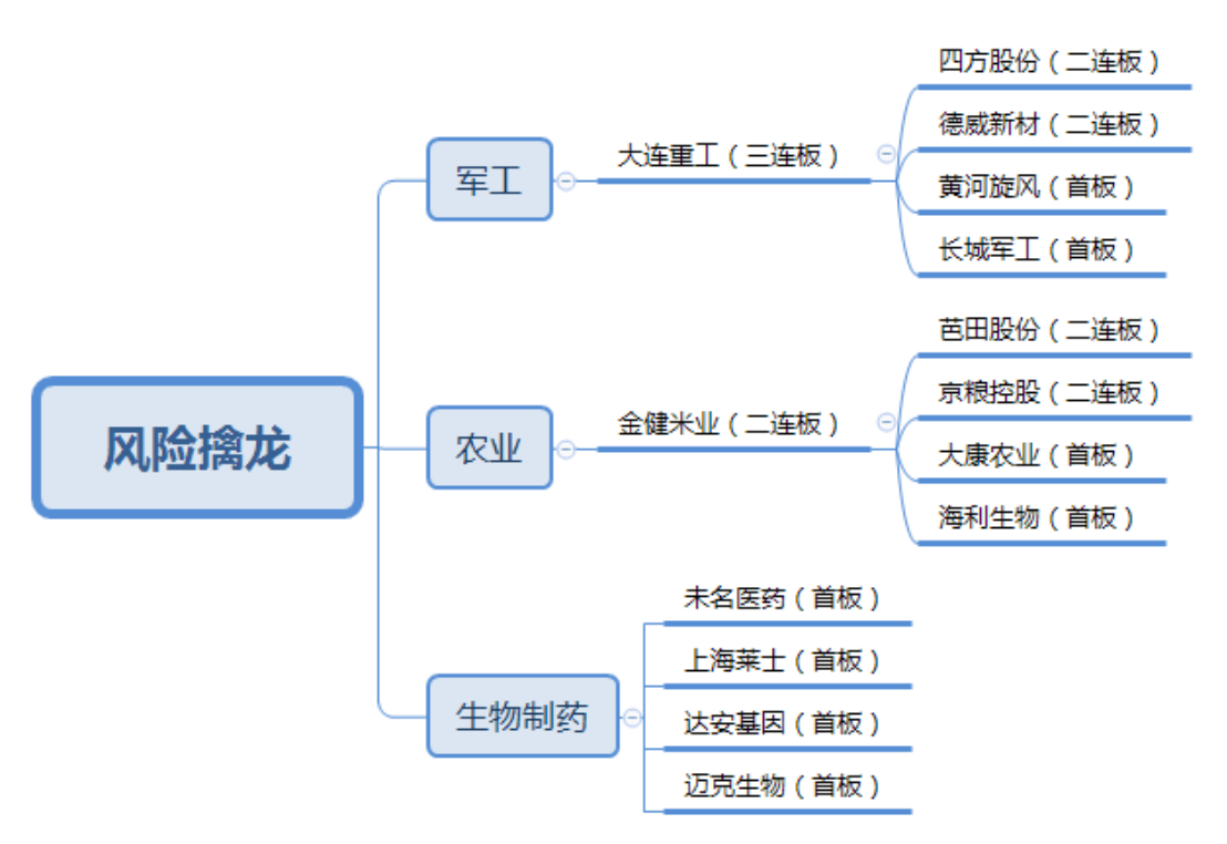 风口板块来看,今日表现较强的是军工、农业和生物制药。