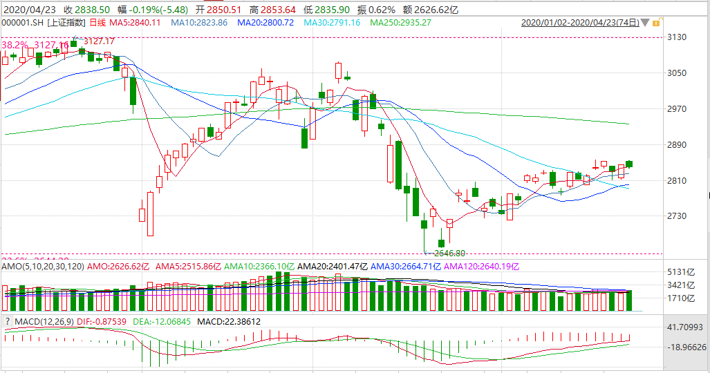 但短期走势上,这里也存在隐忧。一方面在于成交量,成交量一直放不出来,这是隐患,更制约了指数的表现。另一方面则在于近期日K线的MACD指标红柱开始有缩短的迹象,也再次印证了没有成交量的支持,指数上攻无力,开始流露出疲态。