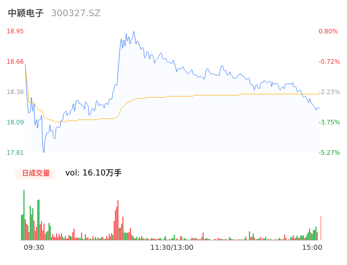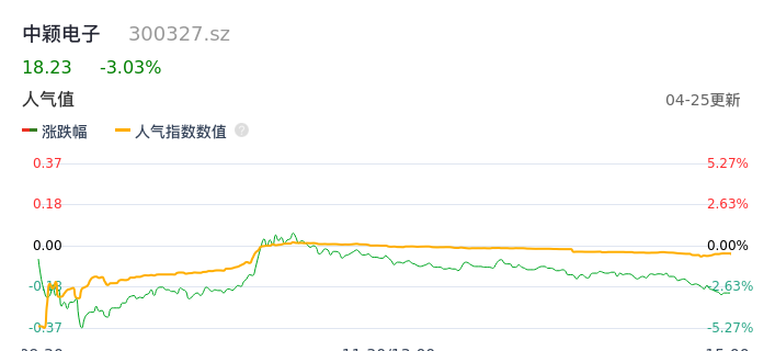 04月25日,中颖电子收报18.23,股价涨幅-3.03%,成交金额2.95亿元,换手率4.74%。