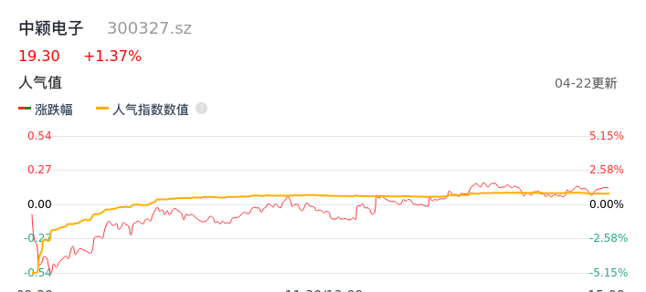 04月22日,中颖电子收报19.30,股价涨幅1.37%,成交金额2.41亿元,换手率3.79%。