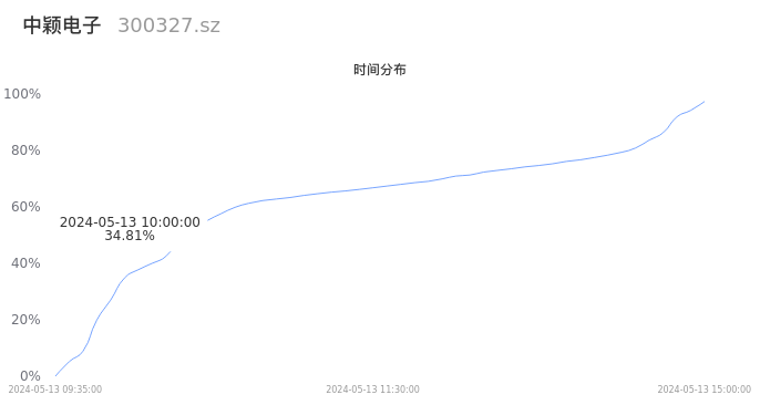根据成交分布分析,该股票当天放量成交,成交清淡。时间上看,早盘前半小时成交量占据当天总成交量的34.81%;价格上看,成交呈现中间峰。成交分布分析主要研究股票成交的分布特性,不具有预测功能,请知悉。