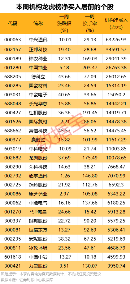 一周龙虎榜:14股获机构净买入超亿元