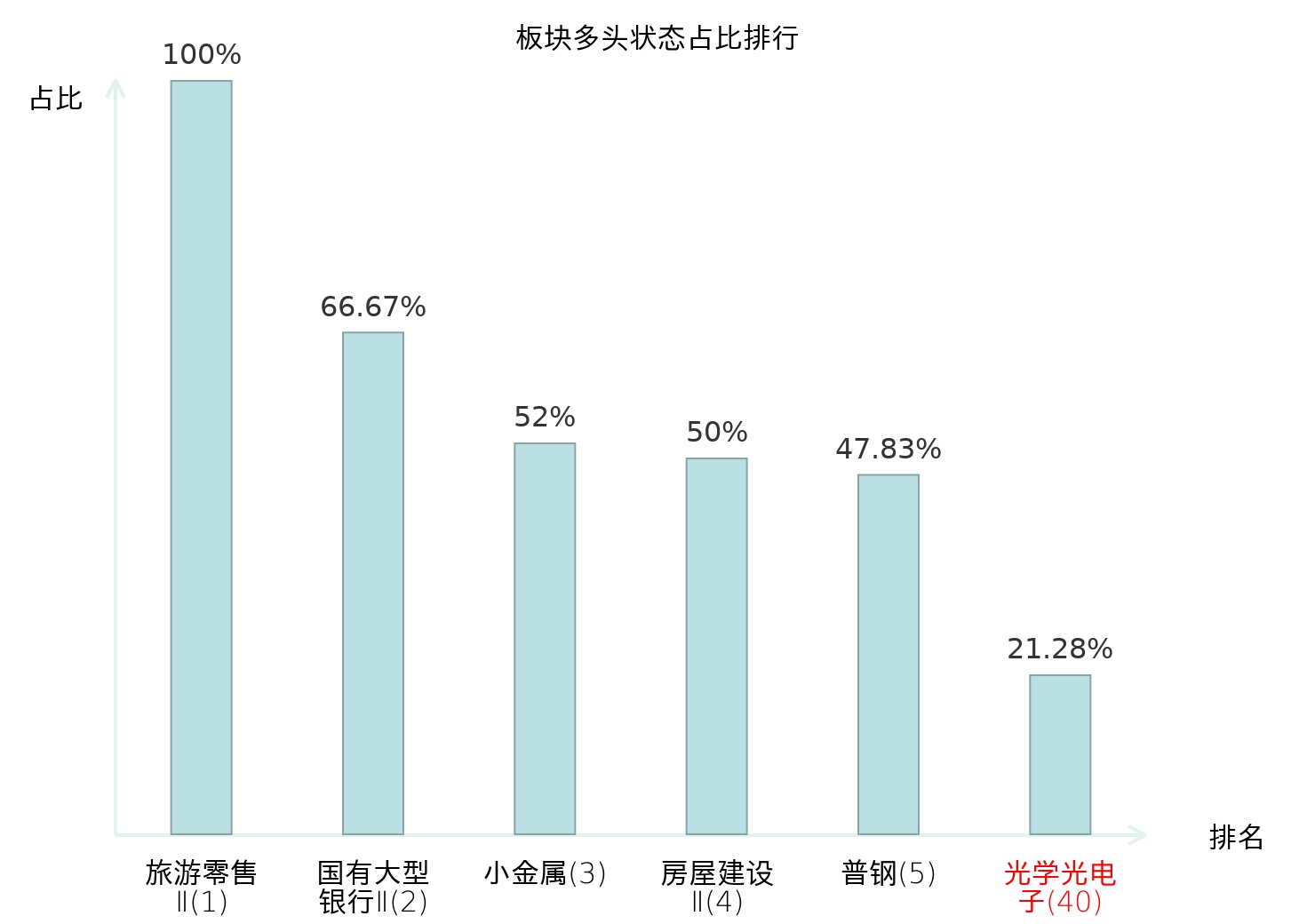 全市场所有行业板块中主力多头状态占比排名中,旅游零售Ⅱ板块位居第一。其他电源设备Ⅱ板块名次提升最快,较昨日上升55位。