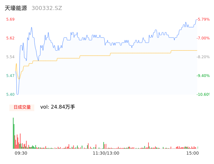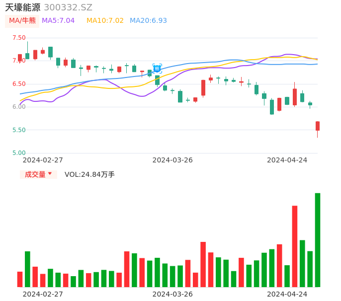 04月24日,天壕能源收报5.68,股价涨幅-5.96%,成交金额1.38亿元,换手率2.98%。