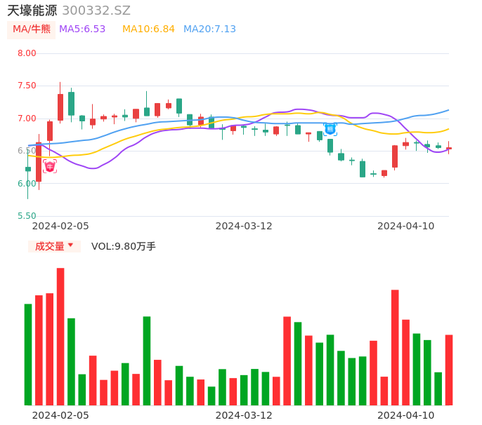 04月10日,天壕能源收报6.55,股价涨幅0.00%,成交金额6411.24万元,换手率1.18%。