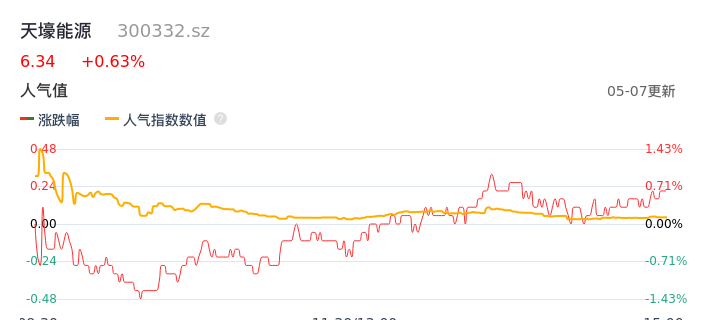 05月07日,天壕能源收报6.34,股价涨幅0.63%,成交金额5293.60万元,换手率1.01%。