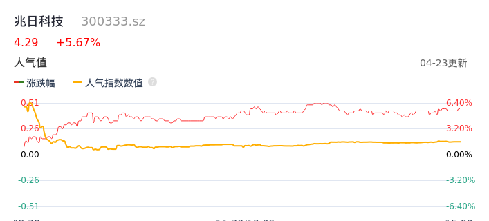 04月23日,兆日科技收报4.29,股价涨幅5.67%,成交金额5315.86万元,换手率3.76%。