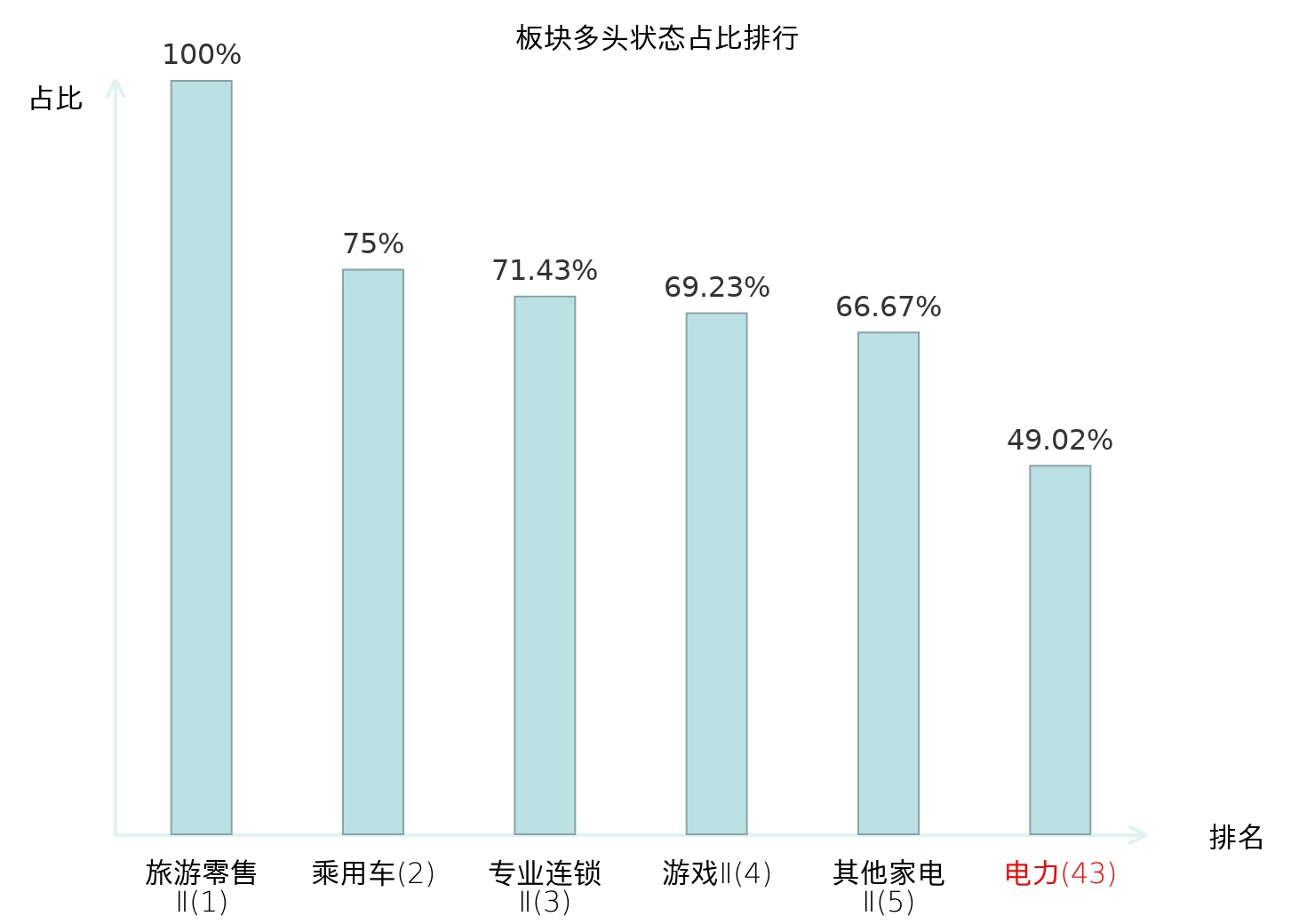 从主力宝信号数据分析,迪森股份所属的电力板块中共有50只股票处于主力多头状态,主力多头状态占比在全行业中排名第43位,较昨日上升31位。排名的提升表明主力对于该板块整体看多意愿增强,这对于投资者来说是一个积极的信号,可能预示着电力行业潜在的投资机会增加。全市场所有行业板块中,旅游零售Ⅱ板块的主力多头状态占比最高,位居第一;保险Ⅱ板块名次提升最快,较昨日上升82位。这些变动反映了不同行业间主力资金动向的趋势,为投资者提供了重要的市场情绪参考。