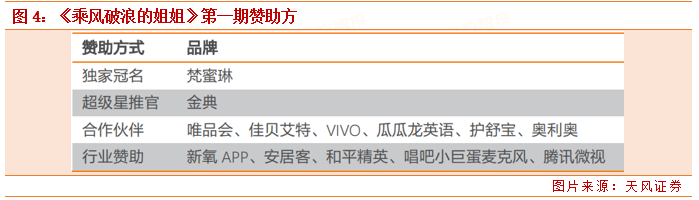 招商广告主数量是截至目前今年之最,预计将贡献大量广告收入:《乘风破浪的姐姐》独家冠名为梵蜜琳,超级星推荐官金典牛奶,合作伙伴包括唯品会、佳贝艾特羊奶粉、VIVO、瓜瓜龙英语、护舒宝和奥利奥,行业赞助包括新氧、安居客、和平精英、唱吧、腾讯微视,合计13个广告主投放,涉及品牌类型包括美妆、食品、母婴、教育等。