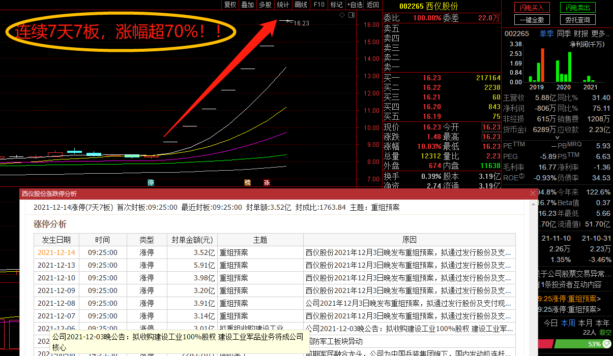 今日军工板块活跃,军工重组概念继续大火。继前两个交易日一字涨停后,早盘【西仪股份】继续一字涨停,重组再度带火军工板块!