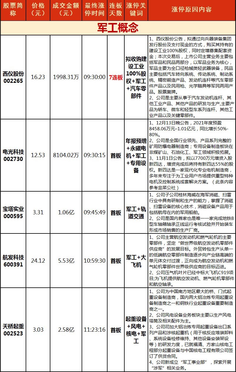 其他相关个股,贵航股份、兰石重装、航发科技、天桥起重、宝塔实业等涨停!!