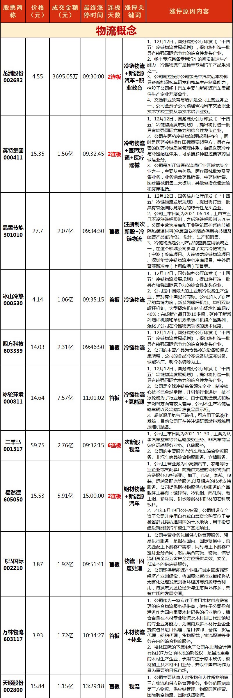 今日冷链物流板块再度大涨,晶雪节能、英特集团、龙洲股份、冰山冷热、冰轮环境、四方股份涨停!!