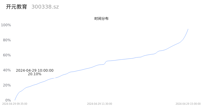 300338开元教育2024年04月29日成交35.12万手,成交金额1.01亿元,相较昨日放量5.33万手,换手率10.83%,成交活跃。