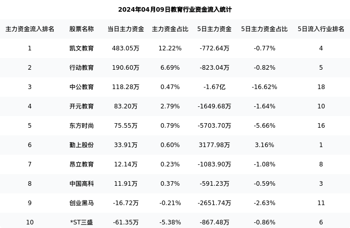 开元教育今日净流入83.20万元,主力占比2.79%,在行业内排名:4/18;5日净流出1649.68万元,主力占比1.64%,在行业内排名:10/18。