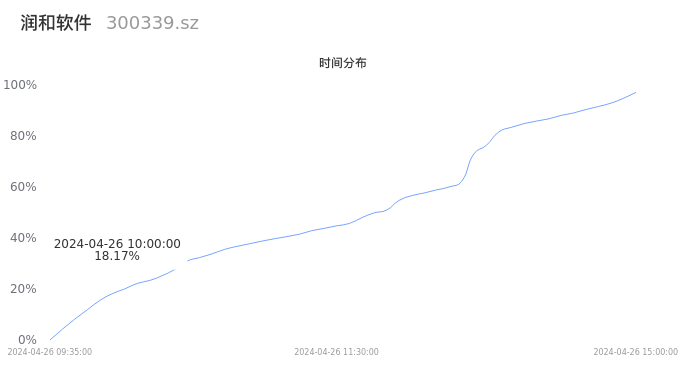 300339润和软件2024年04月26日成交49.81万手,成交金额11.30亿元,相较昨日放量18.41万手,换手率6.40%,成交清淡。