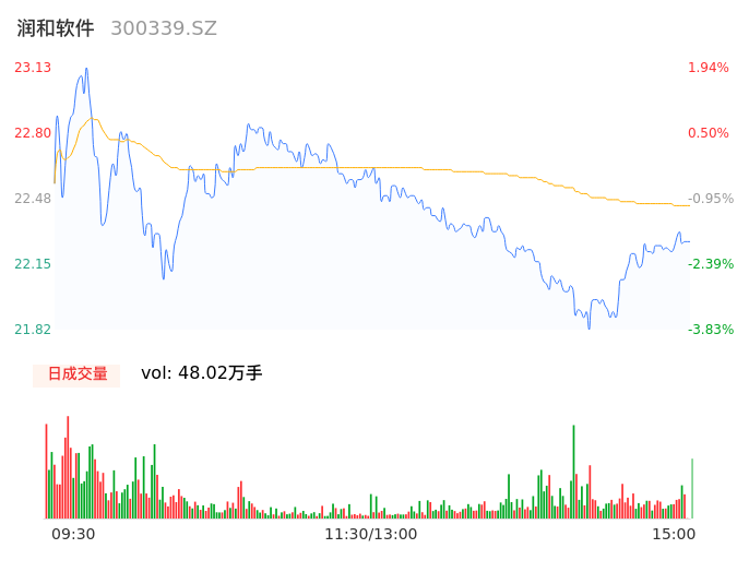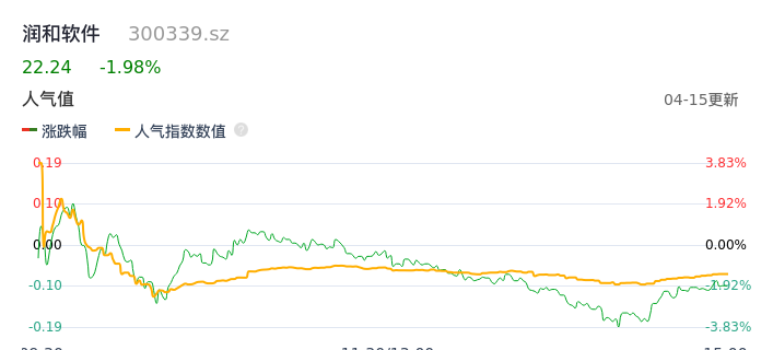 04月15日,润和软件收报22.24,股价涨幅-1.98%,成交金额10.77亿元,换手率6.17%。