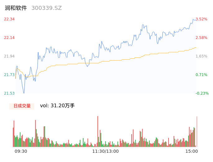 04月24日,润和软件收报22.33,股价涨幅3.48%,成交金额6.88亿元,换手率4.01%。
