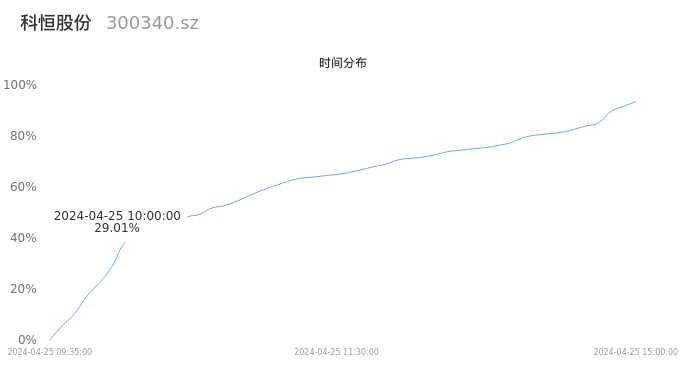 300340科恒股份2024年04月25日成交4.78万手,成交金额3649.68万元,相较昨日缩量1788手,换手率2.55%,成交清淡。