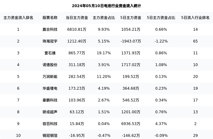 从主力资金流向来看,电池行业今日主力资金流入79.99亿元,在所有申万二级行业中排名:38/131。